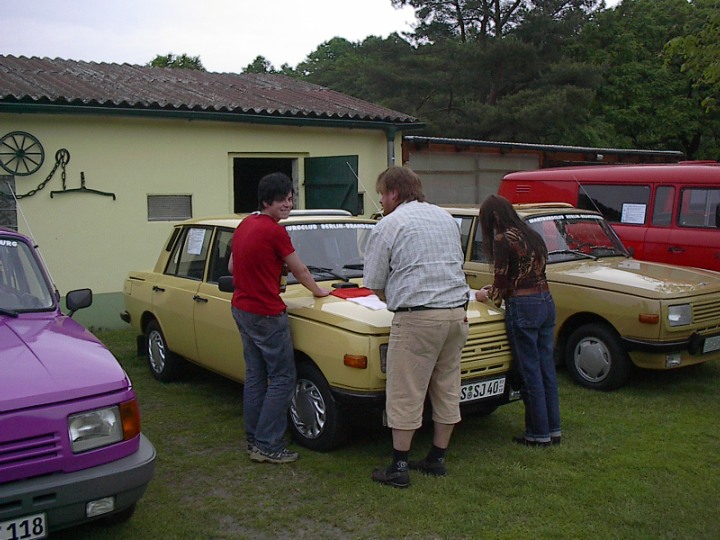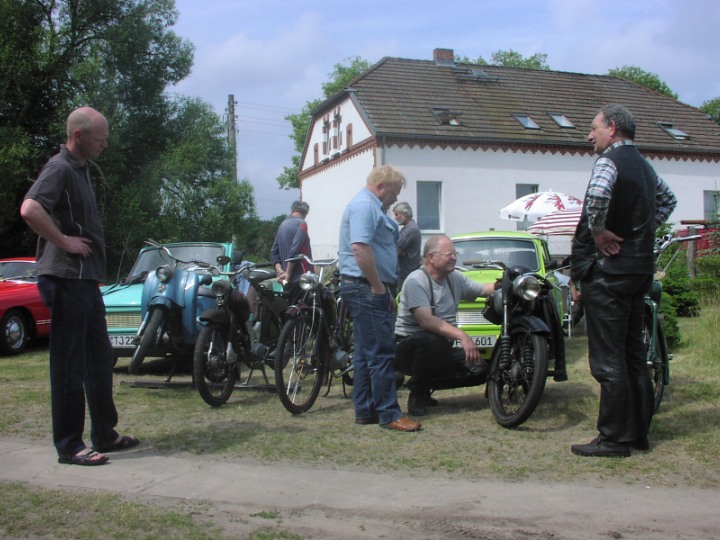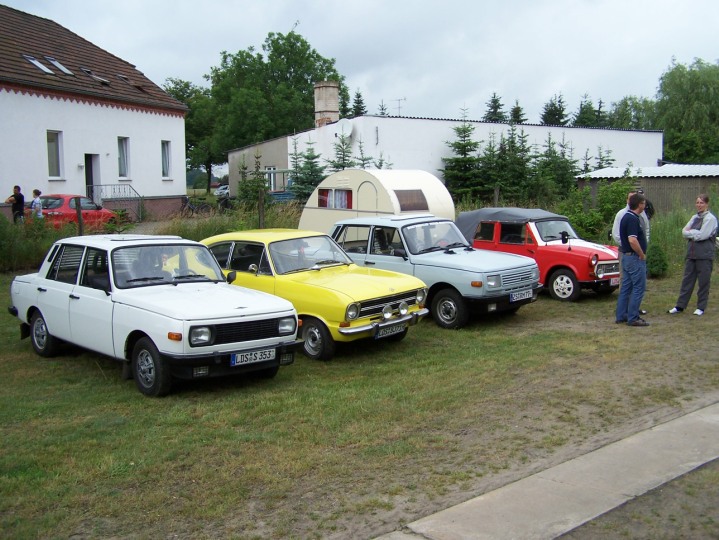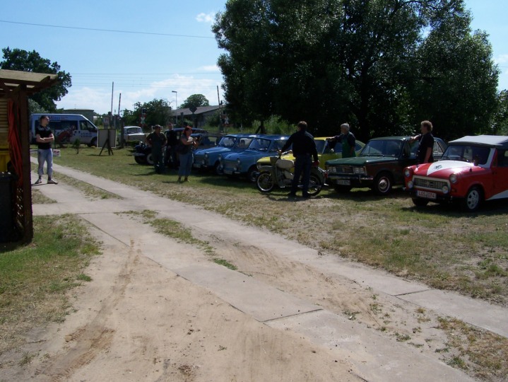 Und schon ist es vorbei, das Treffen. In diesem Jahr hatten wir 30 Teilnehmer, Autos und auch viele Zweirädrige Freunde besuchten uns. MZ., Jawa, EMW, BMW, NSU, SR2, Simson, das älteste Fahrzeug war ein Ford Bj.: 1911, natürlich auch Trabant, Wartburg, Barkas und Wohnanhänger der Marke „Qek Junior“ waren zusehen. Um 12 Uhr starteten wir zur Ausfahrt, es beteiligten sich 16 Fahrzeuge. Die Fahrt führte uns nach Treplin zum Mittagessen, dann weiter über Seelow nach Friedersdorf zum „Kunstspeicher“, geplant war das wir um 16.30 Uhr wieder in Briesen sind, haben es erst zu 17 Uhr geschafft. Es macht eben immer wieder Spaß unsere Fahrzeuge rollen zu lassen. Danach gab es erst mal einen ordentlichen Kaffee und Fachsimpeleien über die Fahrzeuge und deren Details. Es kamen gar zum späten Nachmittag noch einige Besucher, die unsere Fahrzeuge bestaunten. Wie schon Tradition, bringt jeder Essen und Trinken für sich selbst mit, dann wird abends gegrillt. Beim kleinen Lagerfeuer wurde gequatscht und getanzt bis spät in die Nacht.